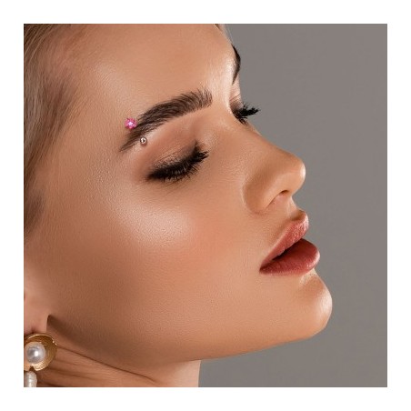 Piercing nombril avec pendentif, perles roses et cristal NOM022P