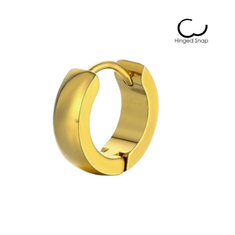 Anneau d'oreille en acier chirurgical de couleur dorée, diamètre 14mm, largeur 4,5mm, tige 0,9mmm d'épaisseur.