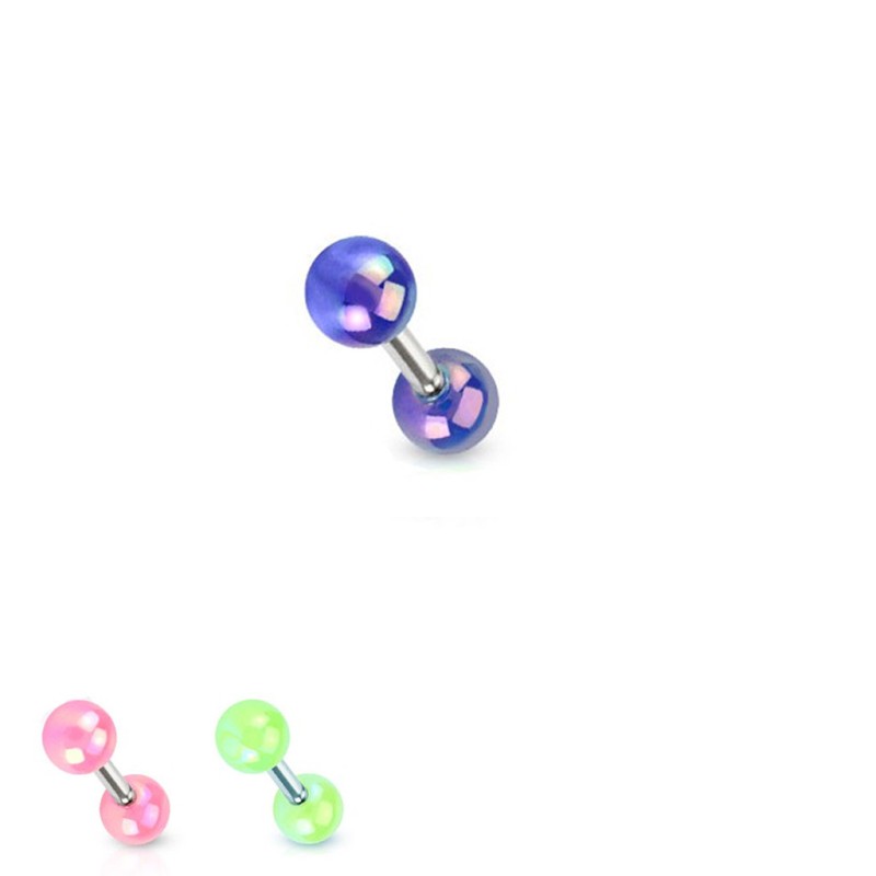 Barre acier chirurgical 6mmx1.2mm pour cartilage, conch, hélix, tragus ou lobe, décoration boules en acrylique 4mm aux couleurs métallisées