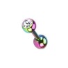 Piercing barbell lobe, cartilage, hélix en titane anodisé arc-en-ciel boules de 4mm dont une icrustée d'un cristal blanc, longueueer de la tige 6mm, épaisseur 1,2mm.