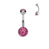 Piercing de nombril banane avec demi boule incrusté de cristal autrichien rose, longueur de tige 10mm, épaisseur 1.6mm.