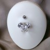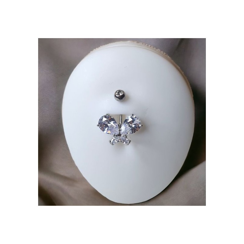 Piercing pour le nombril banane en forme de papillon en zirconium blanc ou rose, tige en acier chirurgical, longueur 10mm, épaisseur 1,6mm.