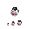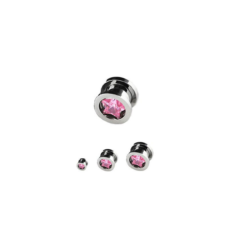 Tunnel 4mm à 14mm avec une étoile en zirconium rose au centre.